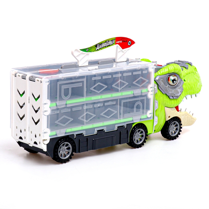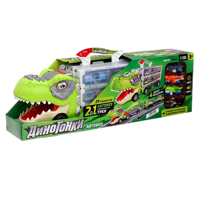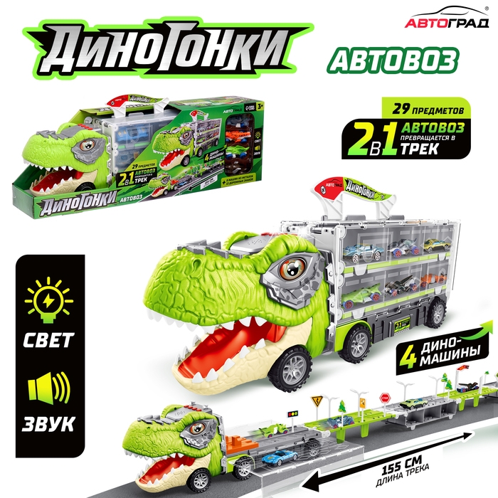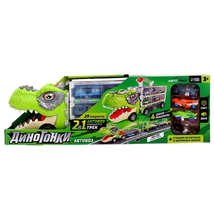 Автовоз-трек «Диногонки», 12 металлических машин, световые и звуковые эффекты
