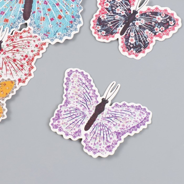 Бабочки картон "Цветочки. Ситец" набор 12 шт h=4-10 см на магните