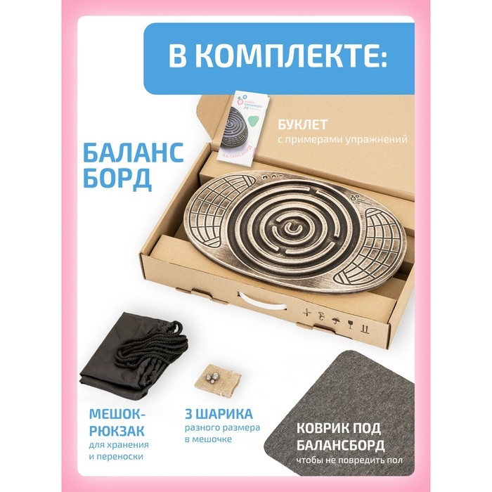 Балансборд «Доска Бильгоу» + 12 предметов, комплект «Успех Макси» для мозжечковой стимуляции