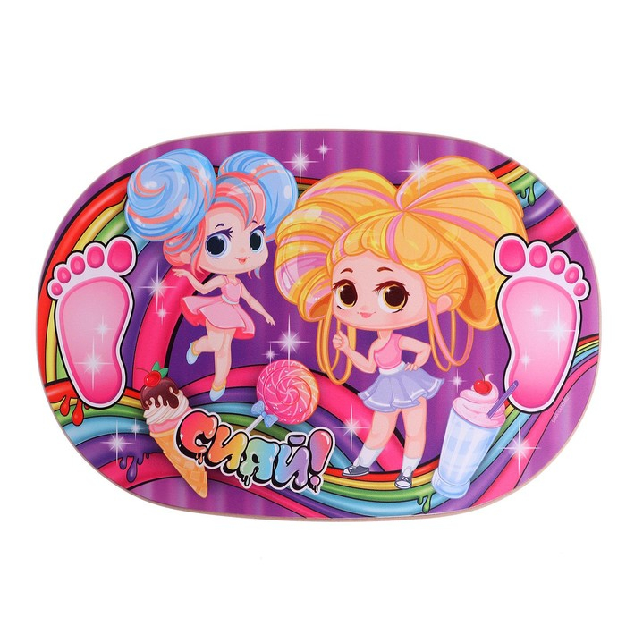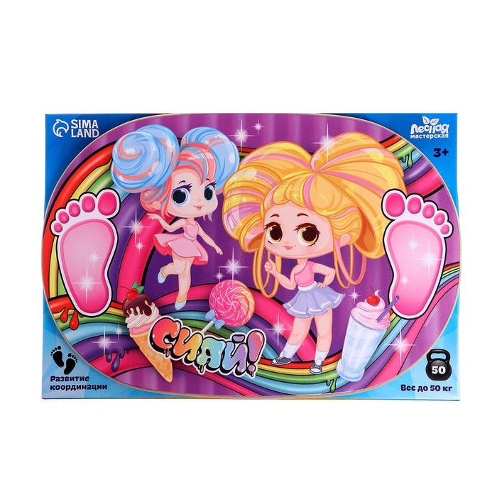 Познакомьте ребёнка с балансиром. Покажите, как он устроен, поставьте на пол. Держа ребёнка за руки, помогите ему встать на изображение ступней. Дайте ребёнку время освоиться. Постепенно он научится держать равновесие без поддержки.