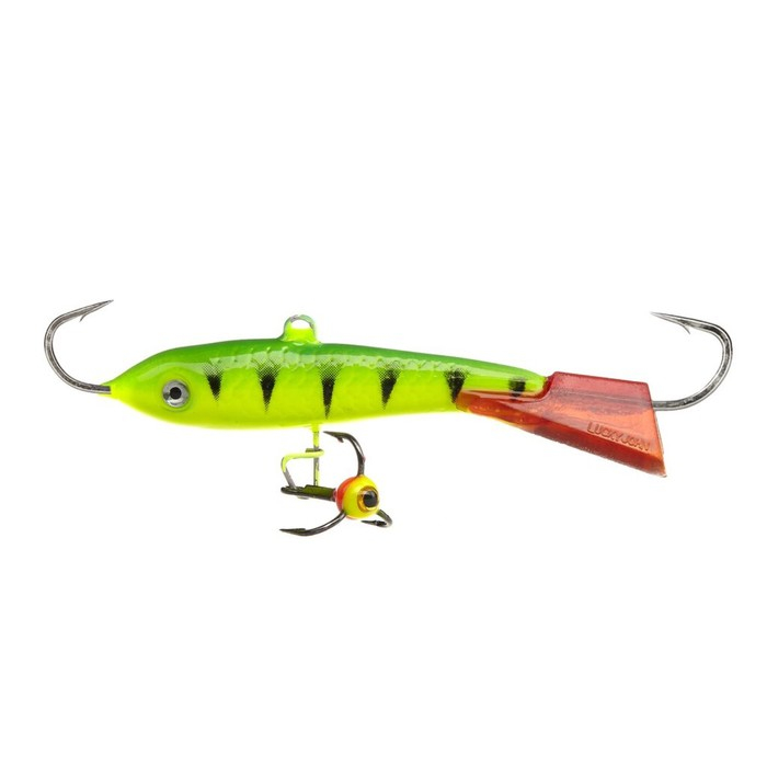Популярный у рыболовов балансир для ловли крупного окуня, берша, судака и щуки. Длина приманки 60 мм. Для ловли судака его с успехом можно использовать на глубинах до 13 метров, если на водоеме нет течения. Особенно уловисты для судака следующие расцветки: с голубой спинкой, «красная голова» – 18 и светящаяся – 33RT. Проверено: когда полное бесклевье, судак реагирует только на расцветку 36RT. Следует учитывать, что щука, как и судак, очень «уважает» расцветки приманок, имеющих в своем составе красные оттенки. Для ловли окуня рекомендуется использовать монофильную леску диаметром от 0,18 до 0, 25 мм, (для ловли судака и щуки до 0,30 мм.) или плетеную леску 0,11 – 0,15 мм.