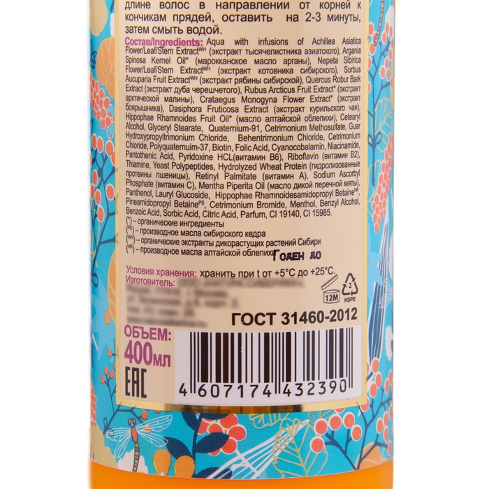 Основным ингредиентом бальзама является облепиха - богатый источник витаминов и минералов, которые питают волосы и укрепляют их структуру. Кроме того, в состав бальзама входят экстракты крапивы и лопуха, которые помогают регулировать работу сальных желез и предотвращают появление жирного блеска.