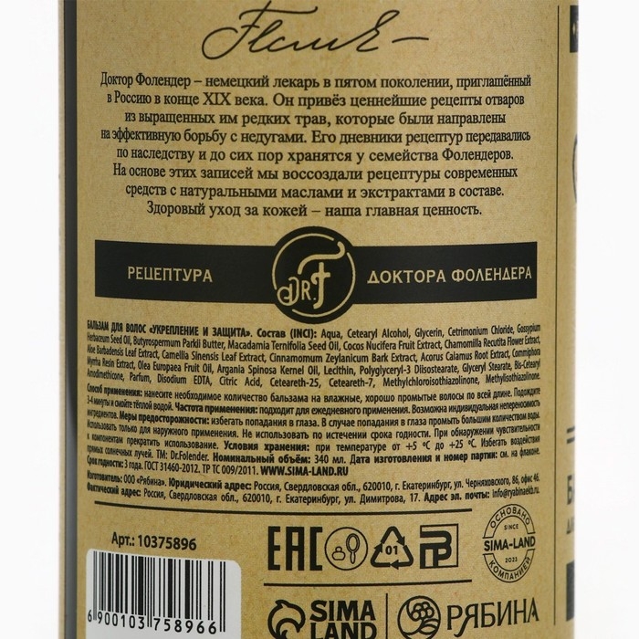 Бальзам для волос с маслом ши и макадамии, восстановление и питание, 300 мл, DR.FOLENDER