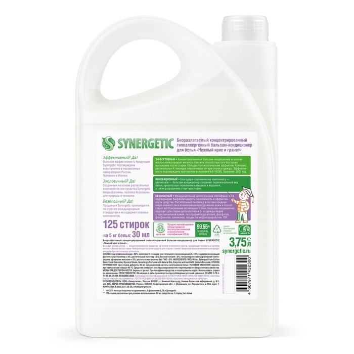 Бальзам-кондиционер для белья Synergetic «Нежный ирис и гранат», концентрат, 3,75л