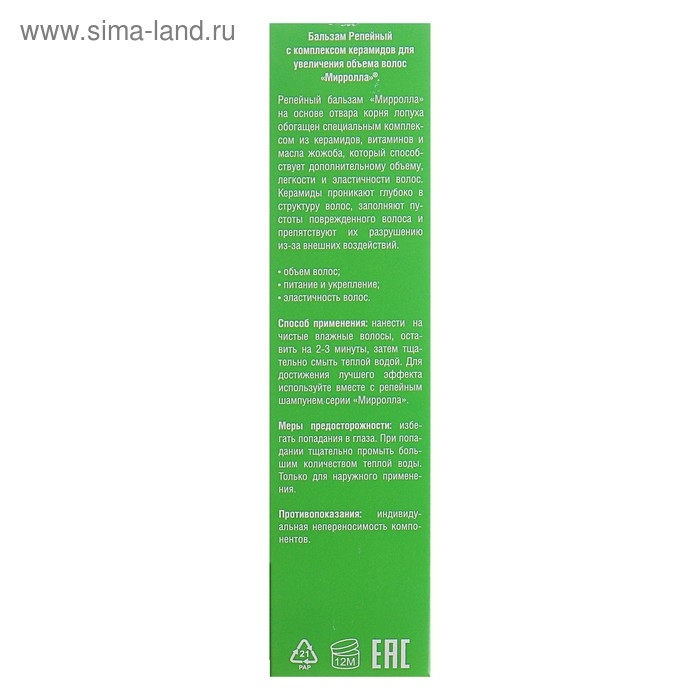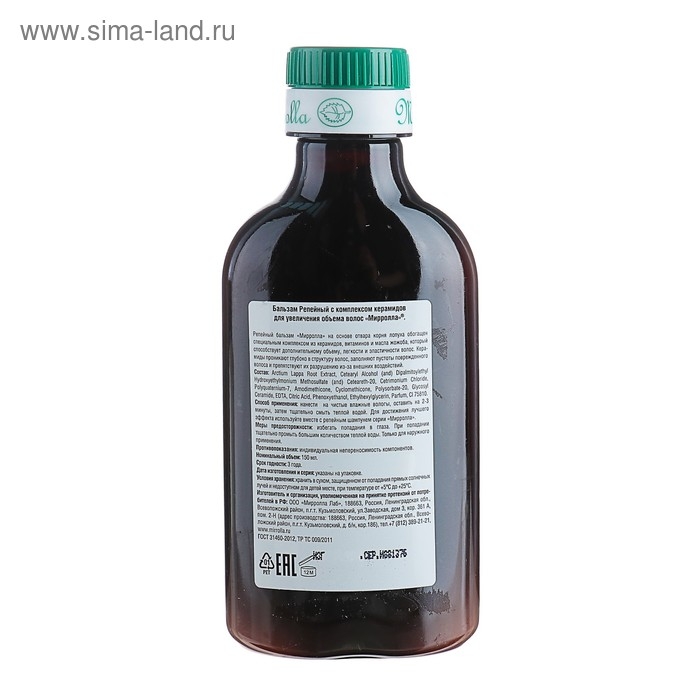 Бальзам Mirrolla Репейный с комплексом керамидов для увеличения объема волос,150мл