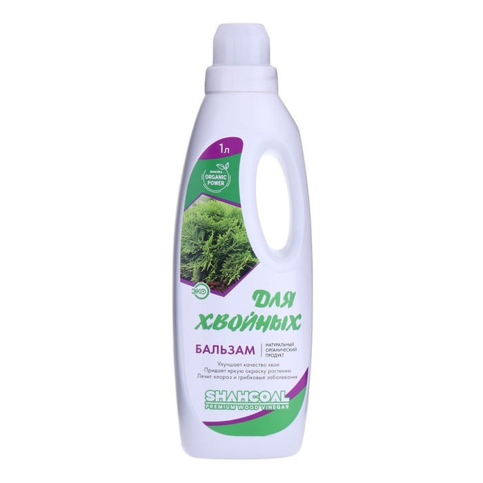 Данная серия предназначена для елей, сосен, туи, пихты, можжевельника, кедра, кипариса, тиса, лиственницы. Бальзам изготовлен из органического сырья (скорлупа грецкого ореха). Органическое удобрение, уникальный экологически чистый продукт. Бальзам имеет запах жидкого дыма. Удобрение содержит комплекс макро- и микроэлементов, необходимых для полноценного и сбалансированного питания растений. Является натуральным биостимулятором, иммуностимулятором. Состав: вода, древесный уксус из скорлупы грецкого ореха, комплекс макро- и микроэлементов (Fe,N,P,K,Mg, Si) Действие:· улучшает качество и густоту хвои· повышает устойчивость растений к заболеваниям, вредителям и резким переменам погодных условий· лечит уже возникший хлороз и грибковые заболевания· улучшает внешний декоративный вид, придает яркую окраску хвое. Органическое удобрение «Бальзам для хвойных» изготовлен на основе древесного уксуса из скорлупы грецкого ореха. Древесный уксус из скорлупы грецкого ореха – натуральное удобрение нового поколения с широким спектром применения. Удобрения на основе древесного уксуса способствуют росту растений, они способны эффективно заменить классические комплексные минеральные подкормки для домашних и садовых цветов, овощных и плодовых культур. Средство имеет подтвержденный накопительный эффект. Органические удобрения на основе древесного уксуса для комнатных и садовых растений и средство защиты растений от вредителей оказывают действие на протяжении продолжительного срока. Поэтому отличаются не только высокой результативностью, но и экономичностью в использовании. Удобрения для садовых растений на основе древесного уксуса – это современное универсальное средство для дачников.. В составе древесного уксуса нет никаких химических добавок, при этом в нем присутствует полный спектр необходимых растениям микроэлементов, благодаря чему можно выращивать экологически чистую полезную и вкусную продукцию - овощи, фрукты и ягоды, избегая опасных токсинов. В конце зимы в домашних условиях можно высаживать рассаду томатов, огурцов, перцев, капусты и других овощей и безопасно стимулировать их рост бальзамами на основе древесного уксуса. А весной выполнить высадку подросших культур в теплицу или в открытый грунт под агроволокно. Универсальное органическое удобрение позволяет выращивать свежую зелень на подоконнике круглый год – даже осенью и зимой. Если применять средство для дачи, то здесь также нет ограничений. Подкормка отлично работает на культурах разных видов: хвойных, ягодных и овощных, бахчевых. Обрабатывать можно грядки с картофелем, тыквой, рапсом, клубникой и голубикой. Помимо картошки, задействуйте органическое удобрение на клумбах с пионами и другими цветами. Обрабатывать можно даже такие высокие растения, как подсолнух и кусты крыжовника, саженцы и молодые деревья яблони, груши, вишни, персика. Какой принцип действия древесного уксуса? Подкормка безопасно способствует росту однолетних и многолетних культур. Питательный раствор можно распылять на поверхность субстрата. Если обрабатывать стебли и листья, то средство также эффективно работает как защита от вредителей. Удобрение помогает цветению и росту корней, помогает быстро восстановиться растению после пересадки и обрезки. Органические удобрения на основе 