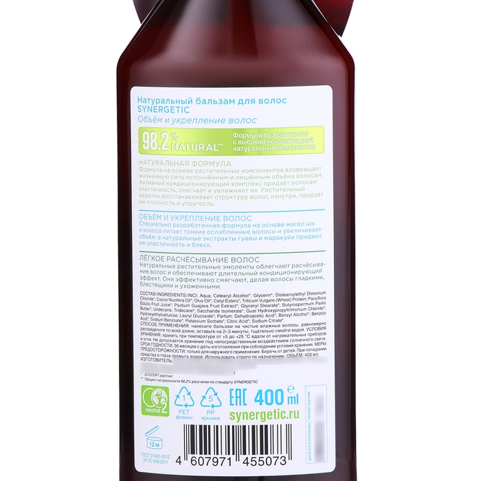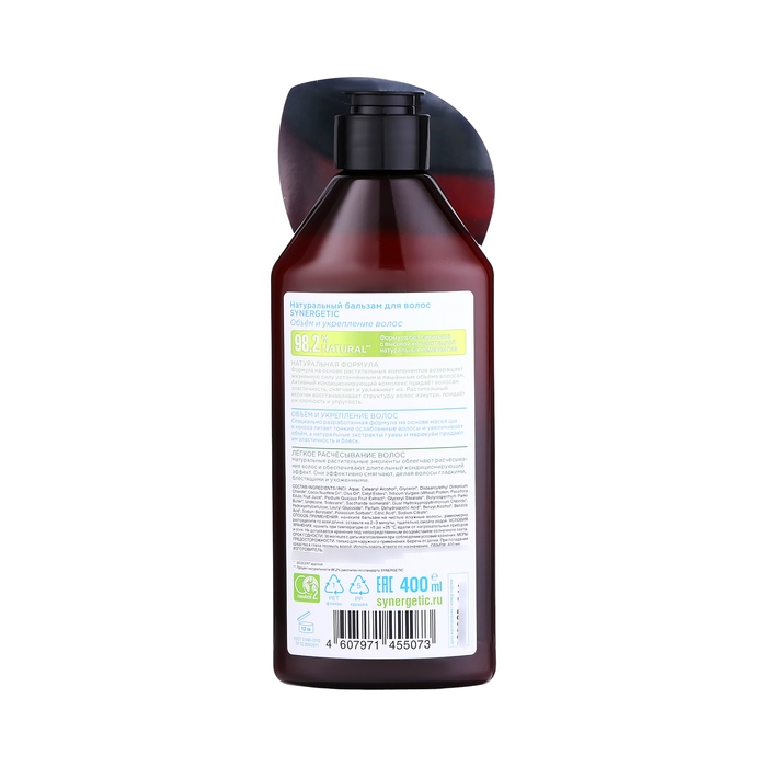 Бальзам натуральный для волос SYNERGETIC объём и укрепление волос, 400 мл