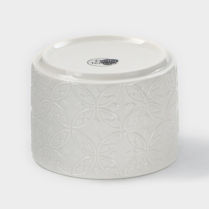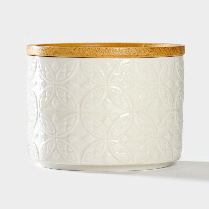 Банка для хранения сыпучих продуктов BellaTenero «Листья», 330 мл, d=10 см, с бамбуковой крышкой, фарфоровая, цвет белый