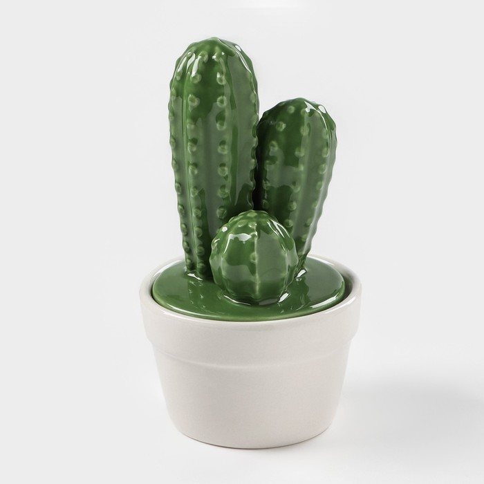 Банка для хранения сыпучих продуктов Доляна «Кактус», 170 мл, 8×8×15 см, керамическая