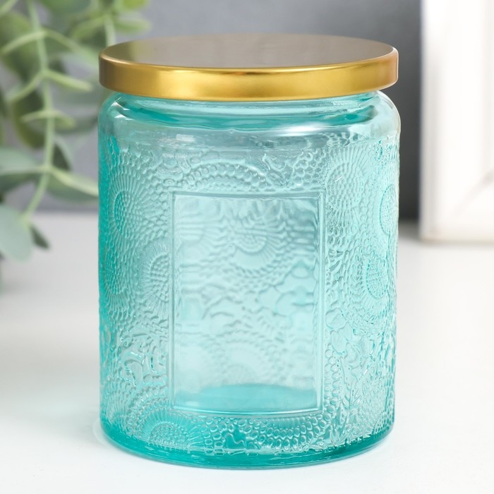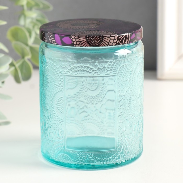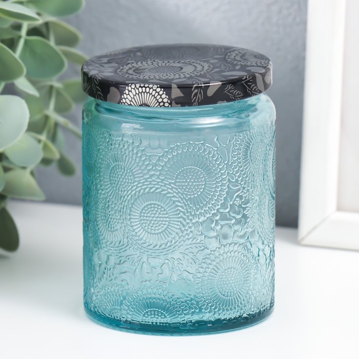 Банка для свечей стекло с крышкой "Цветочная" зелёная, цилиндр 9х7х7 см, МИКС