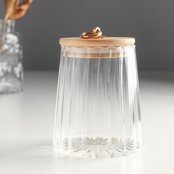Банка для свечей стекло с крышкой "Рельеф" 630 мл 10,9х10,9х12,5 см