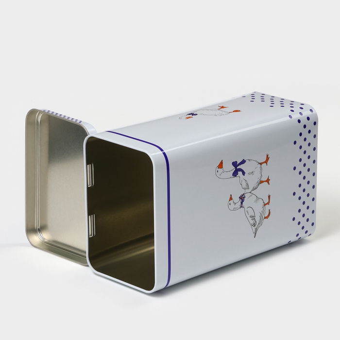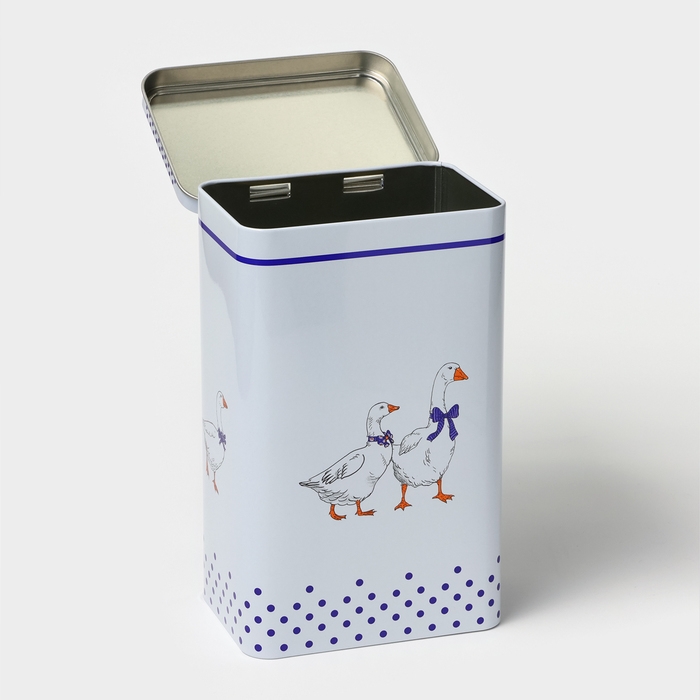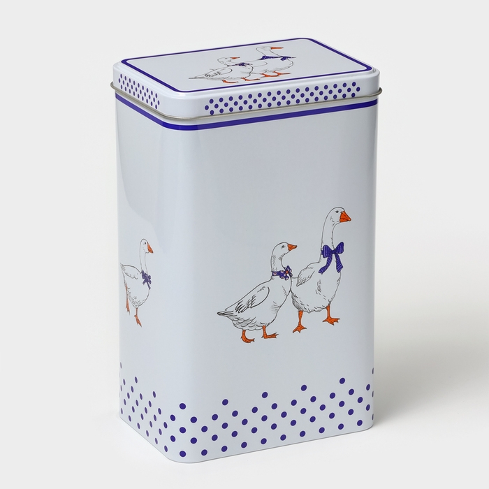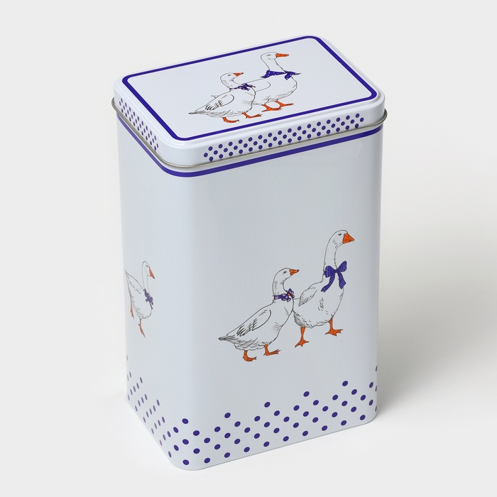Банка для сыпучих продуктов «Гуси», 2,7 л, 13,5 х 9,5 х 21,5 см, жесть, цвет белый в горох