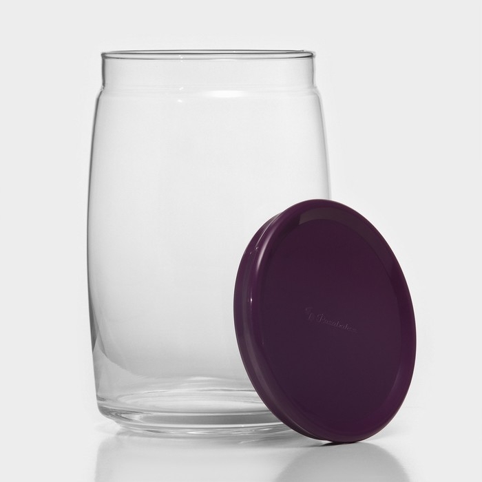 Банка для сыпучих продуктов стеклянная Cesni, 1,1 л, сиреневая пластиковая крышка