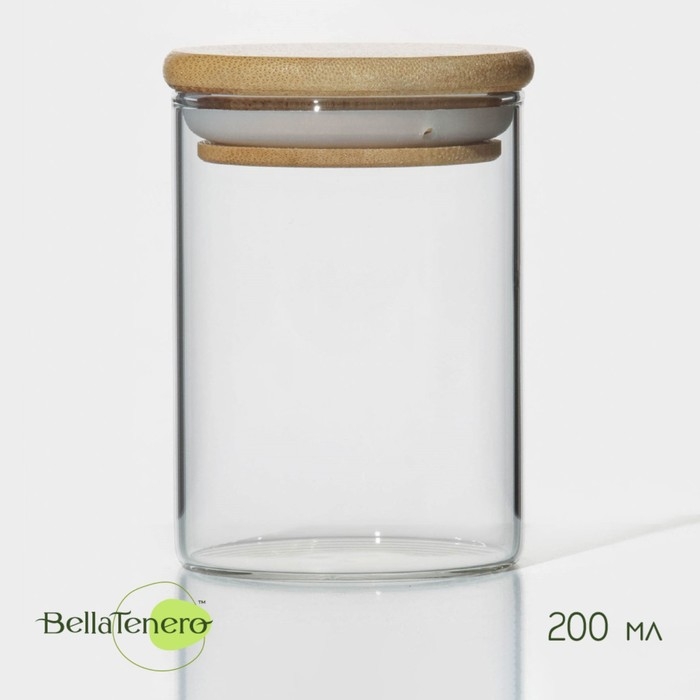Банка стеклянная для хранения сыпучих продуктов BellaTenero «Эко», 200 мл, 6,5×8,5 см,с бамбуковой крышкой