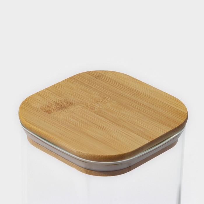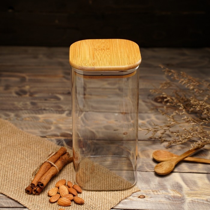 Банка стеклянная для хранения сыпучих продуктов BellaTenero «Эко. Квадратная», 1,5 л, 10×21 см, с бамбуковой крышкой