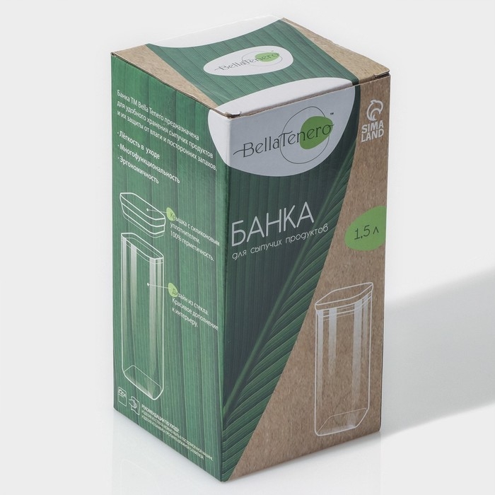 Банка для сыпучих продуктов BellaTenero «Эко. Квадратная» изготовлена из стекла. Крышка с силиконовым уплотнителем защитит продукты от влаги и посторонних запахов.