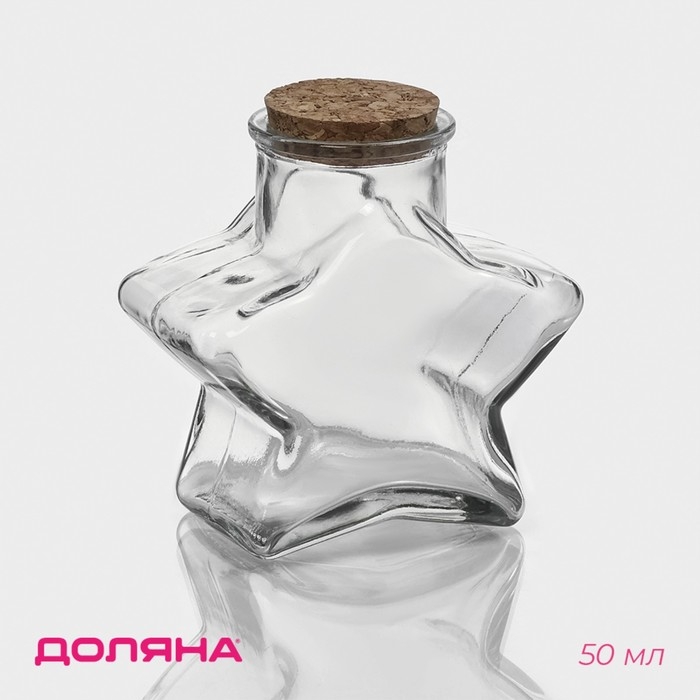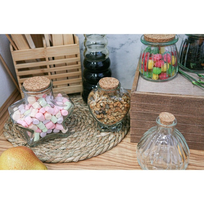 Банка стеклянная для хранения сыпучих продуктов Доляна «Парфе. Звезда», 350 мл, 6,5×11,5 см, с пробковой крышкой