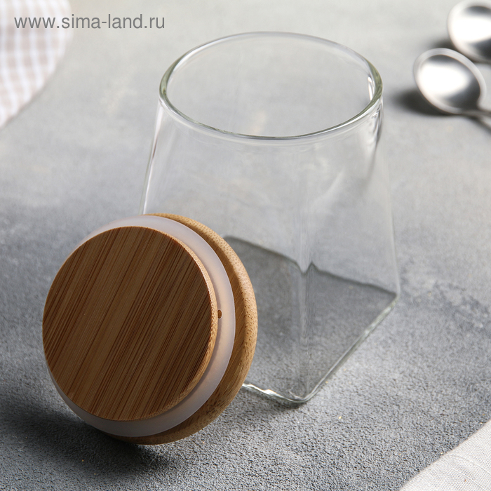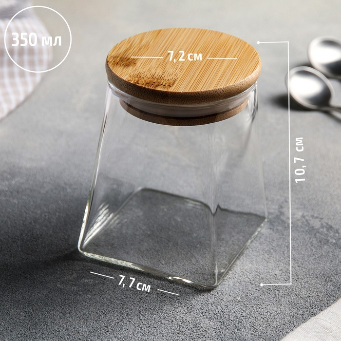 Банка стеклянная для хранения сыпучих продуктов «Эко. Трапеция», 350 мл, 7,5×10 см, с бамбуковой крышкой
