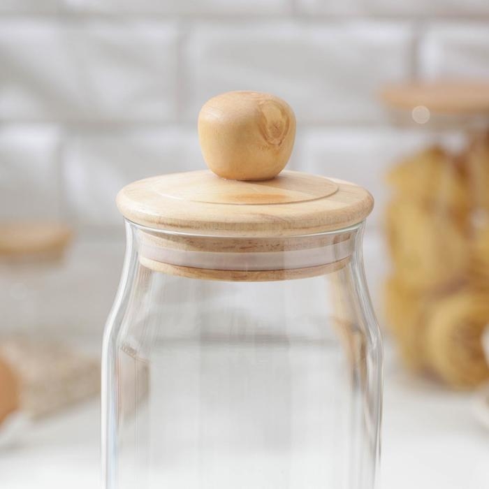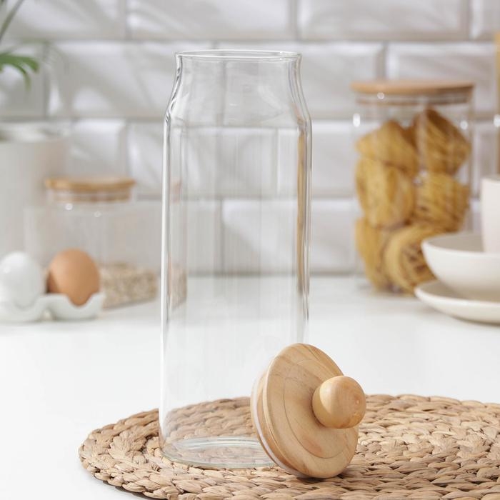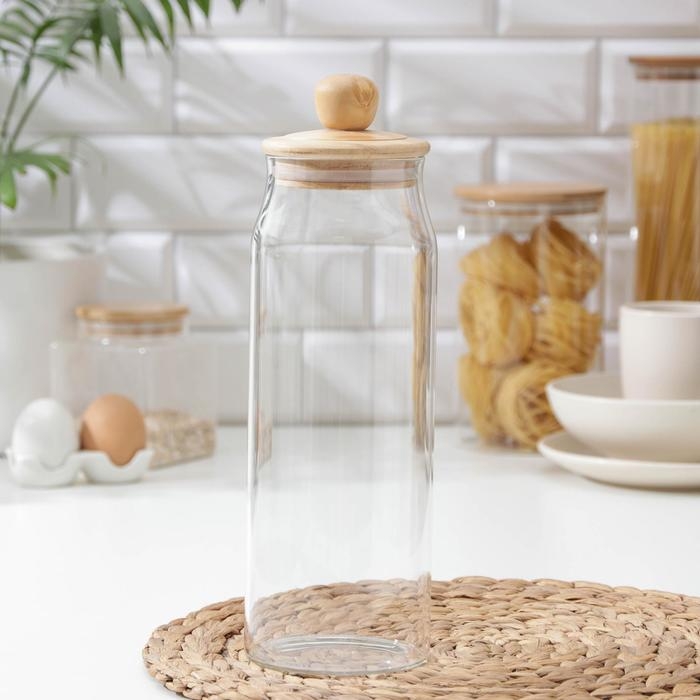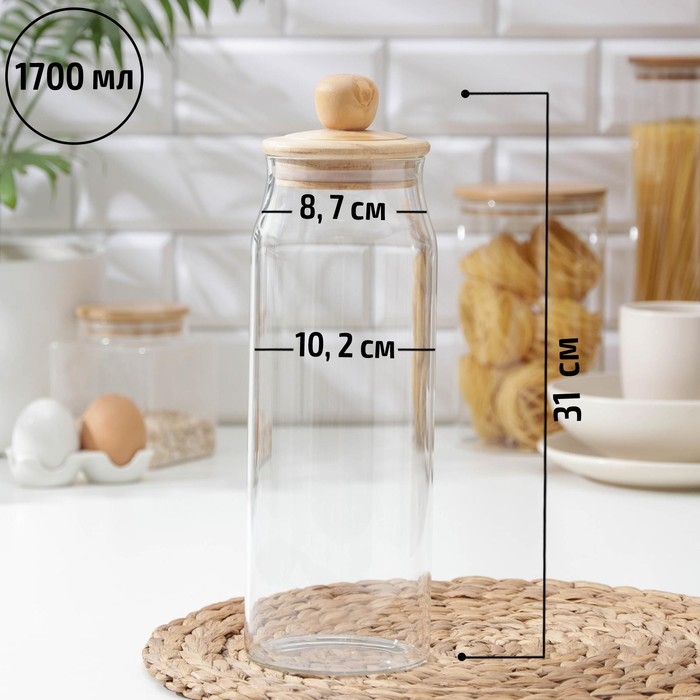 Банка стеклянная для хранения сыпучих продуктов Magistro «Эко», 1,7 л, 10×31 см, с деревянной крышкой