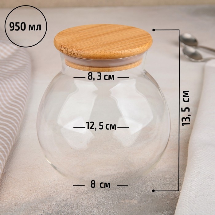 Банка стеклянная для сыпучих продуктов «Эко. Бабл», 950 мл, 12,5×13,5 см