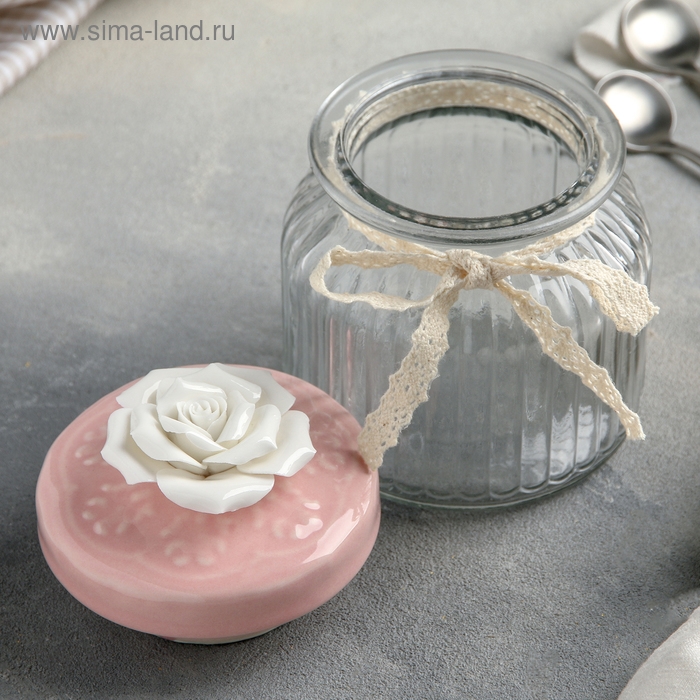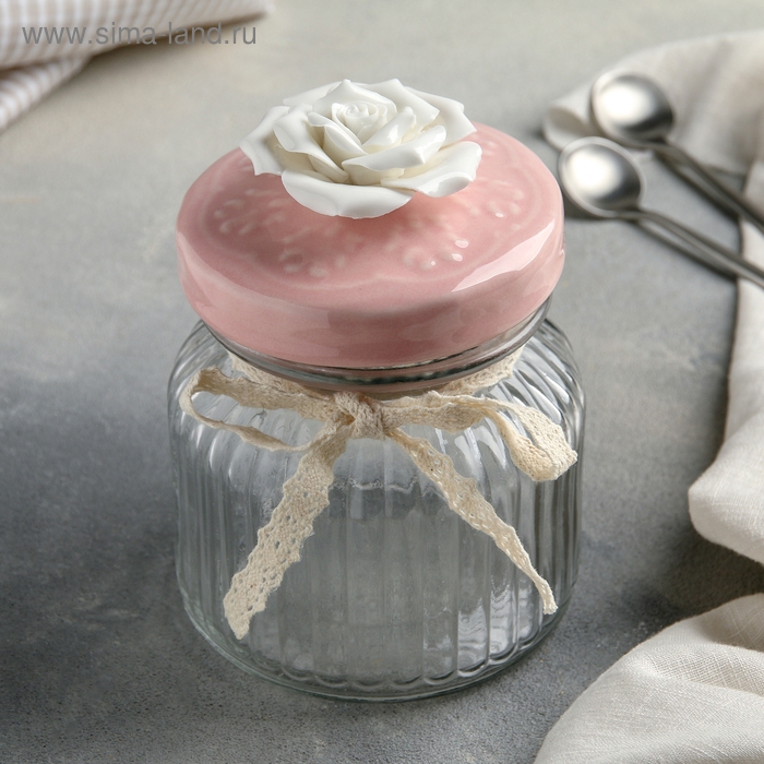 Банка стеклянная для сыпучих продуктов «Роза», 600 мл, 11×14 см, цвет крышки розовый