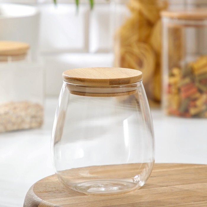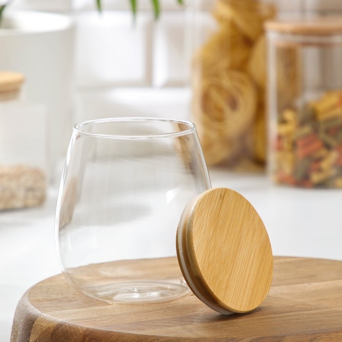Банка стеклянная для сыпучих продуктов с бамбуковой крышкой BellaTenero «Эко», 750 мл, 11×12,5 см