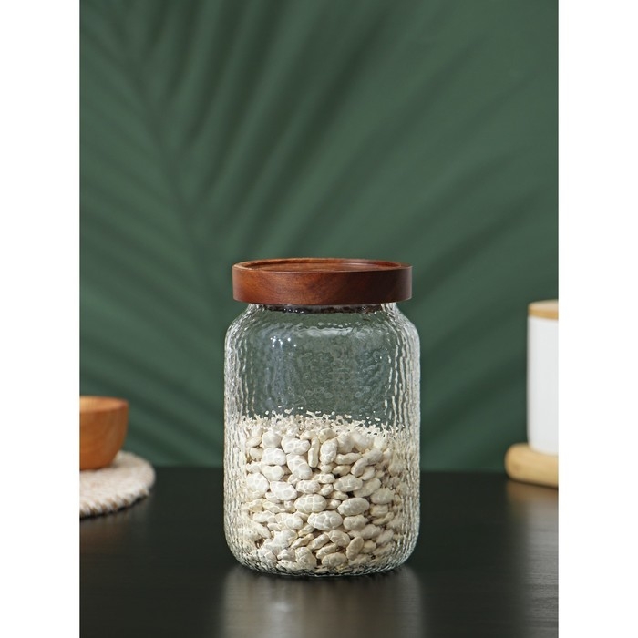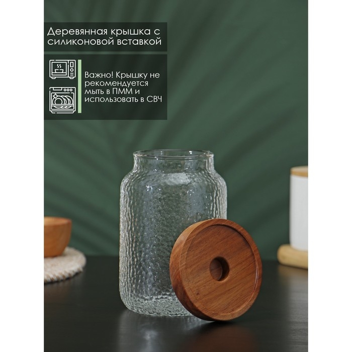 Банка стеклянная для сыпучих продуктов с деревянной крышкой «Винни», 750 мл, 9×15 см