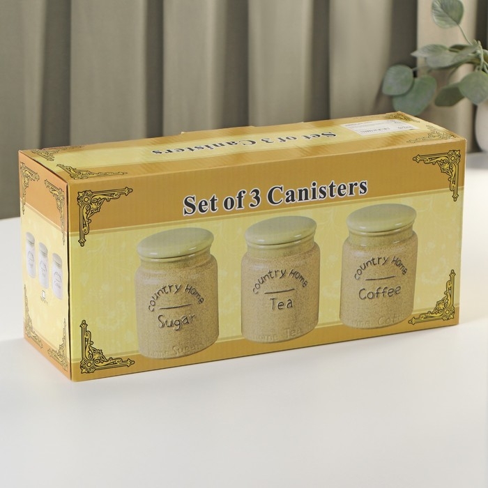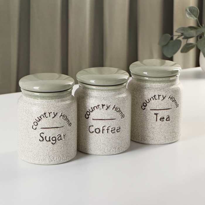 Банки для хранения сыпучих продуктов «Домик в деревне», 3 предмета: 750 мл, 10,5×14,5 см, керамические, цвет зелёный