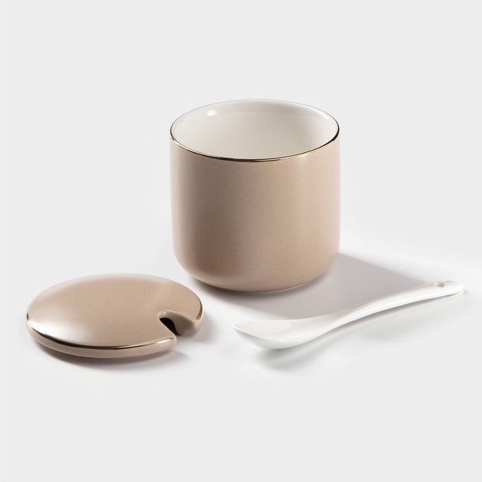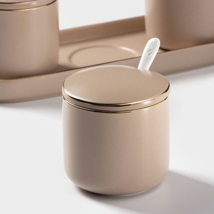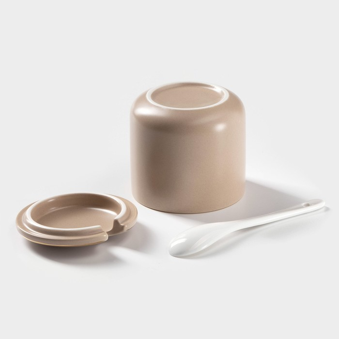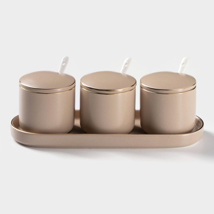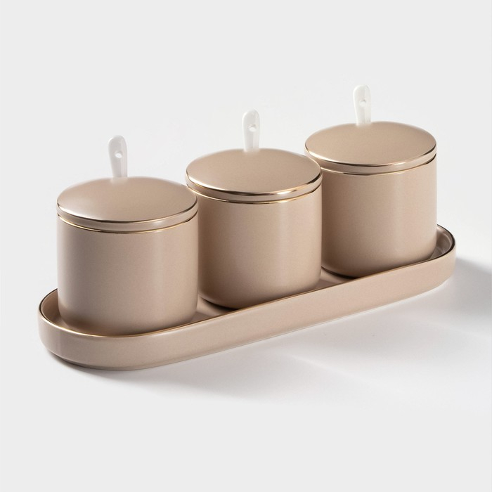 Банки для хранения сыпучих продуктов с ложками на подставке «Пастель», 3 предмета: 250 мл, 8×8 см, керамические, цвет бежевый