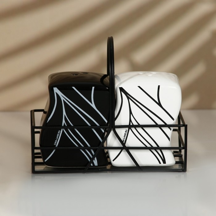 Банки для специй на металлической подставке «Линии», 2 шт