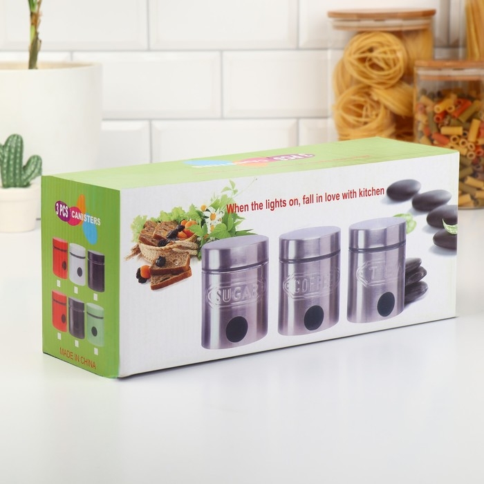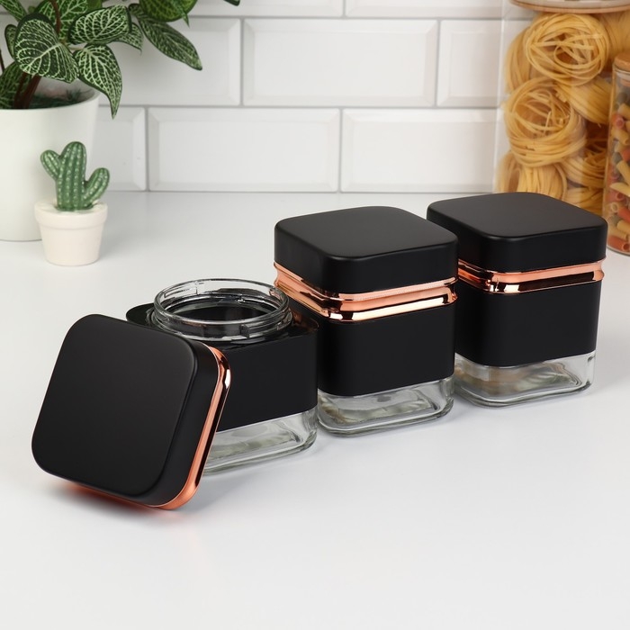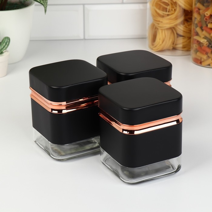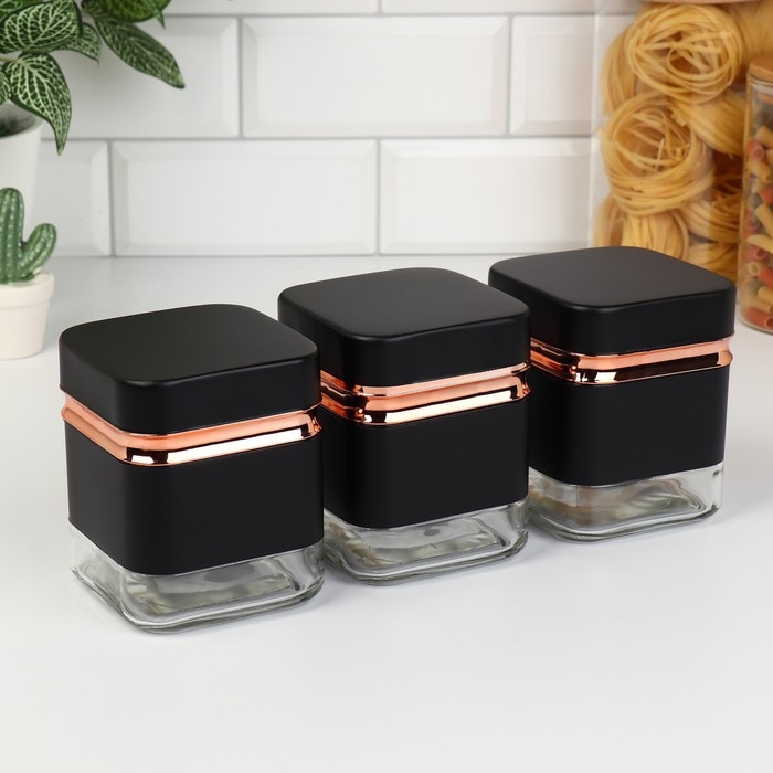 Банки стеклянные для хранения сыпучих продуктов «Классика», 500 мл, 9,5×11,8 см, 3 шт, цвет чёрный