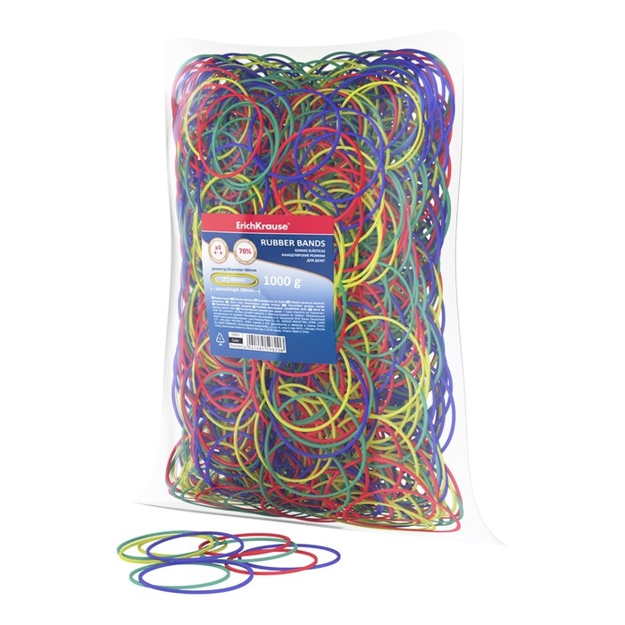 Банковская резинка, 1000 г, ErichKrause, диаметр 60 мм, длина 100 мм, в пакете, микс
