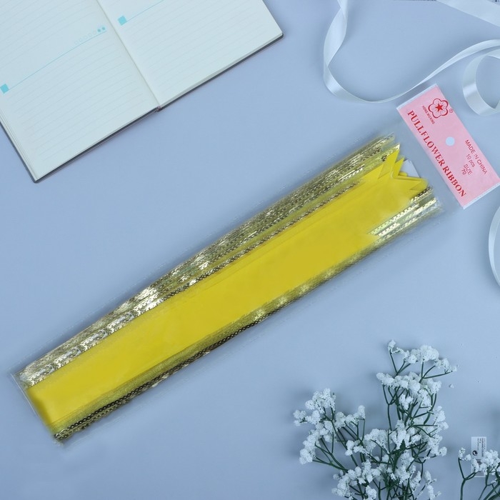 Применение: Для того чтобы собрать бант, надо потянуть за две ленточки, находящиеся между широкими лентами, удерживая широкие ленты в месте спайки.