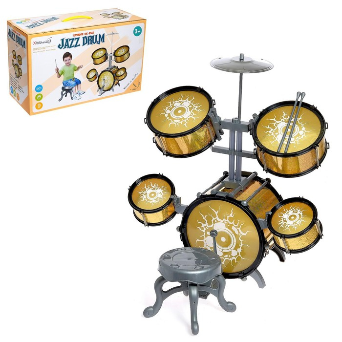 Барабанная установка «Голд», 5 барабанов, тарелка, палочки, стульчик, педаль