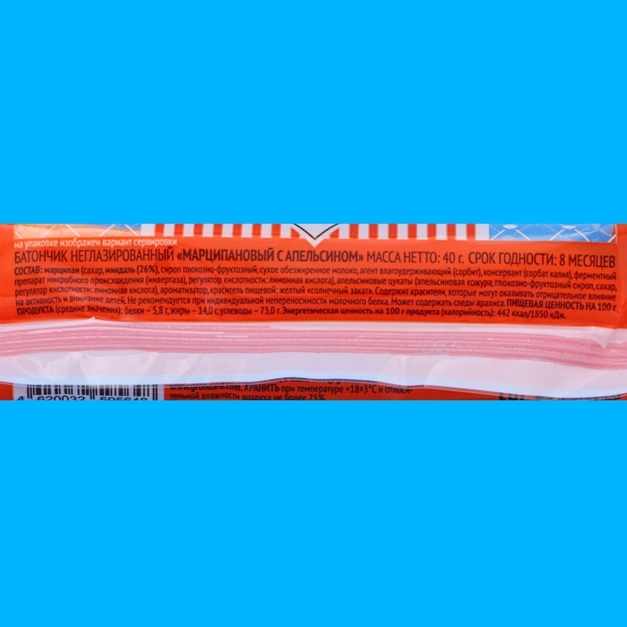Батончик неглазированный марципановый, апельсин, 40 г