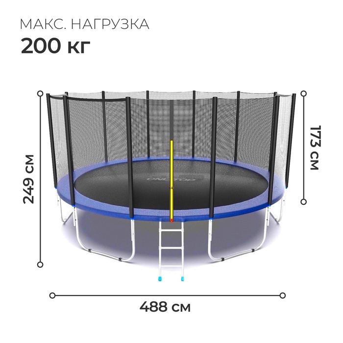 Батут ONLITOP, d=488 см, высота сетки 173 см, с лестницей, цвет синий