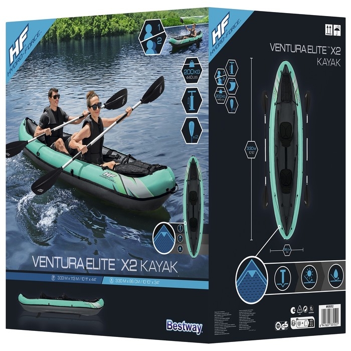 Байдарка Lite-Rapid X2 Kayak, 2-местная, вёсла 218 см, до 160 кг, 321 х 88 х 48 см, 65077 Bestway