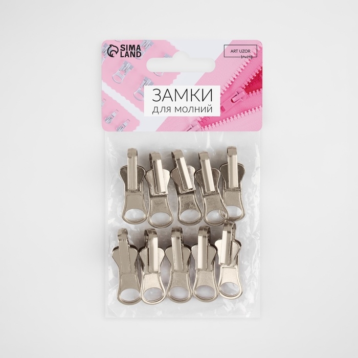 Бегунок автоматический для молнии «Трактор», №5, 10 шт, цвет никель