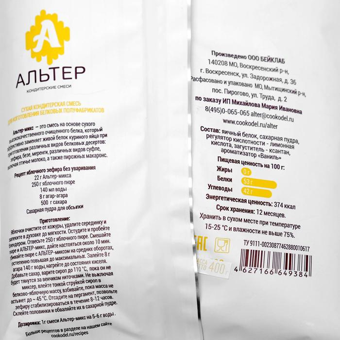 Белковая смесь для безе, зефира и птичьего молока «АЛЬТЕР-МИКС», 400 г
