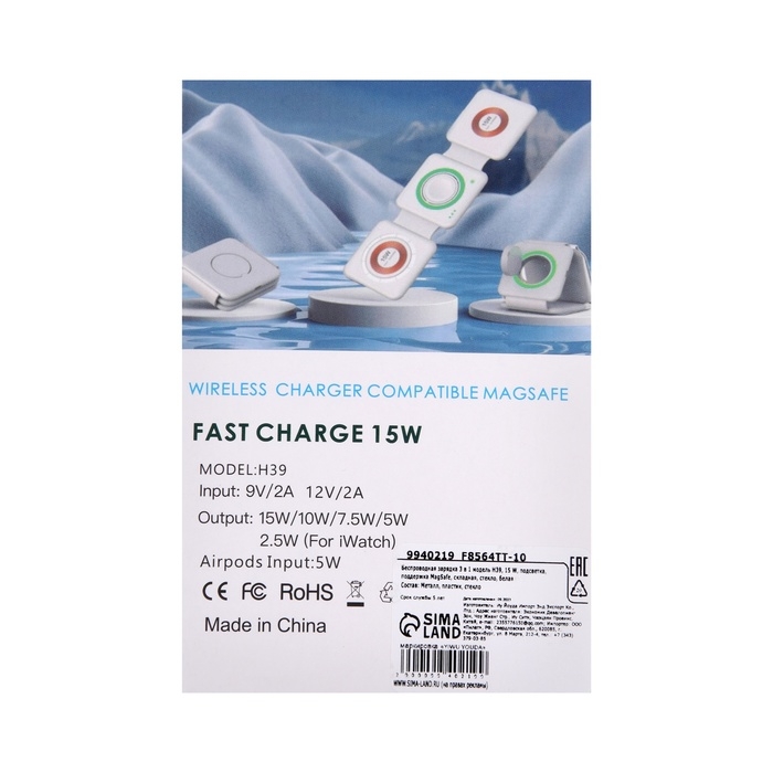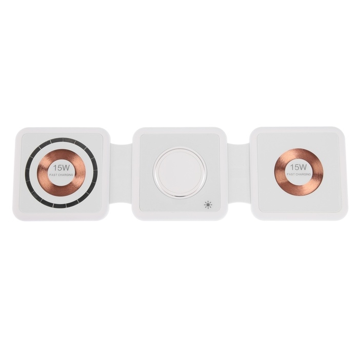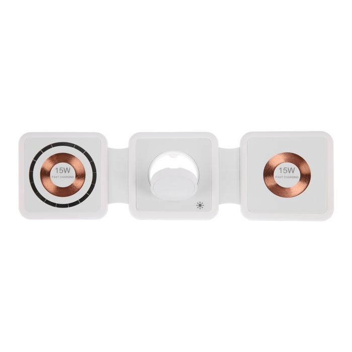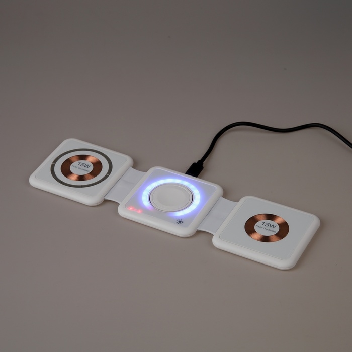 Беспроводная зарядка 3 в 1 H39, 15 W, подсветка, поддержка MagSafe, складная, стекло, белая