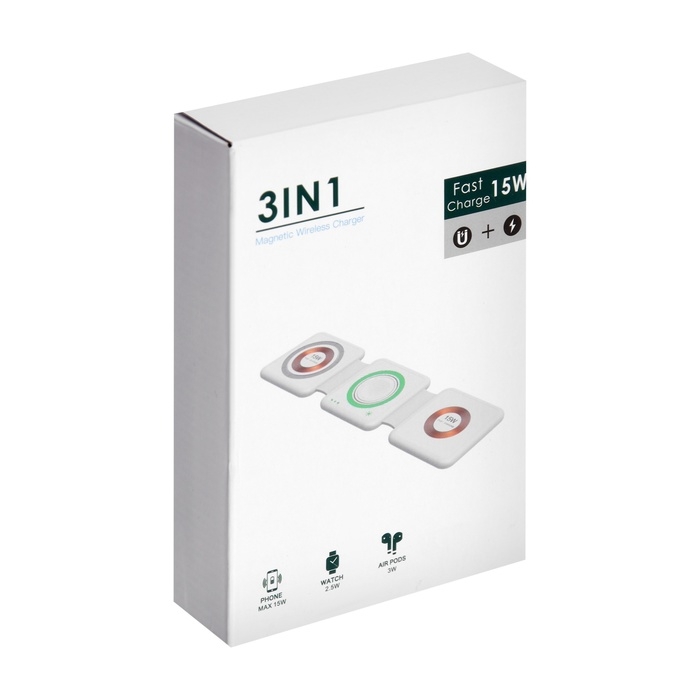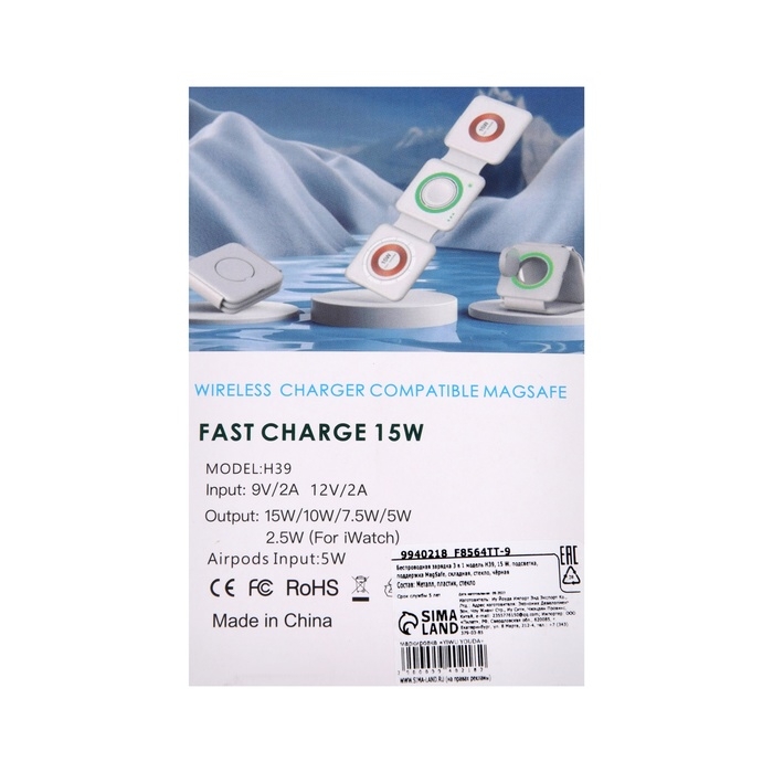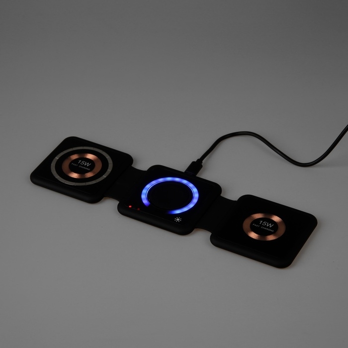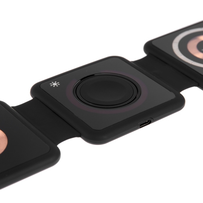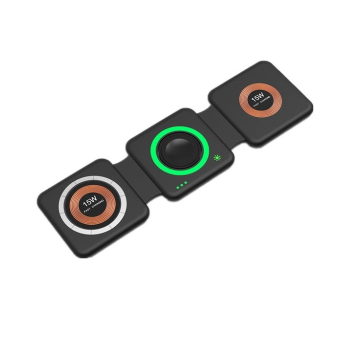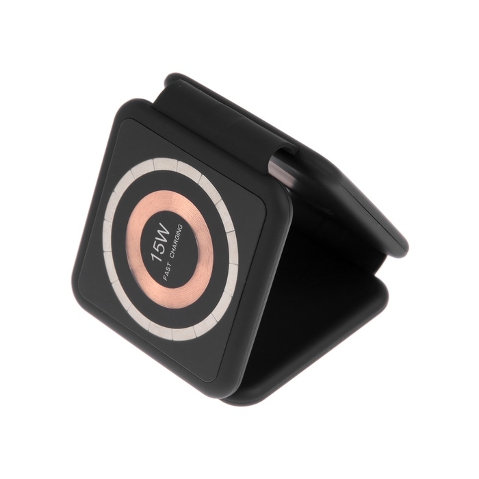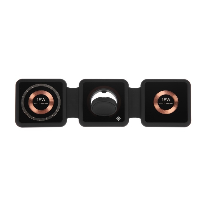 Беспроводная зарядка 3 в 1 H39, 15 W, подсветка, поддержка MagSafe, складная, стекло, чёрная