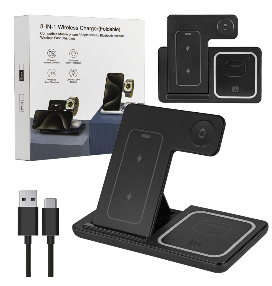 Беспроводное зарядное устройство 3 в 1 F187 15W Черное