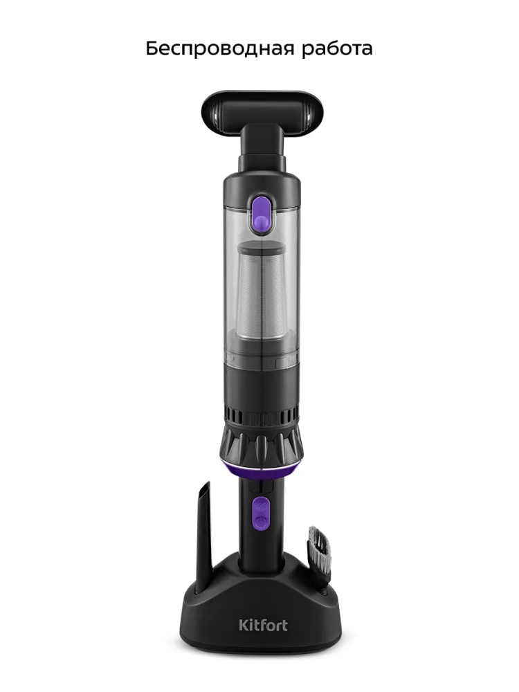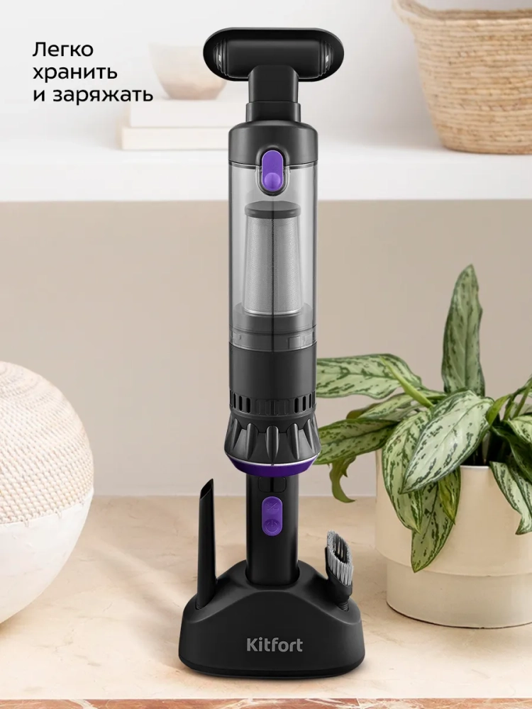 Беспроводной ручной пылесос Kitfort КТ-5293 — это портативное и компактное устройство, которое легко справится с пылью и мусором. Благодаря работе от аккумулятора пылесос имеет неограниченный радиус действия: от любого уголка квартиры до машины или беседки в саду. Небольшие габариты и малый вес пылесоса делают процесс уборки простым и удобным.