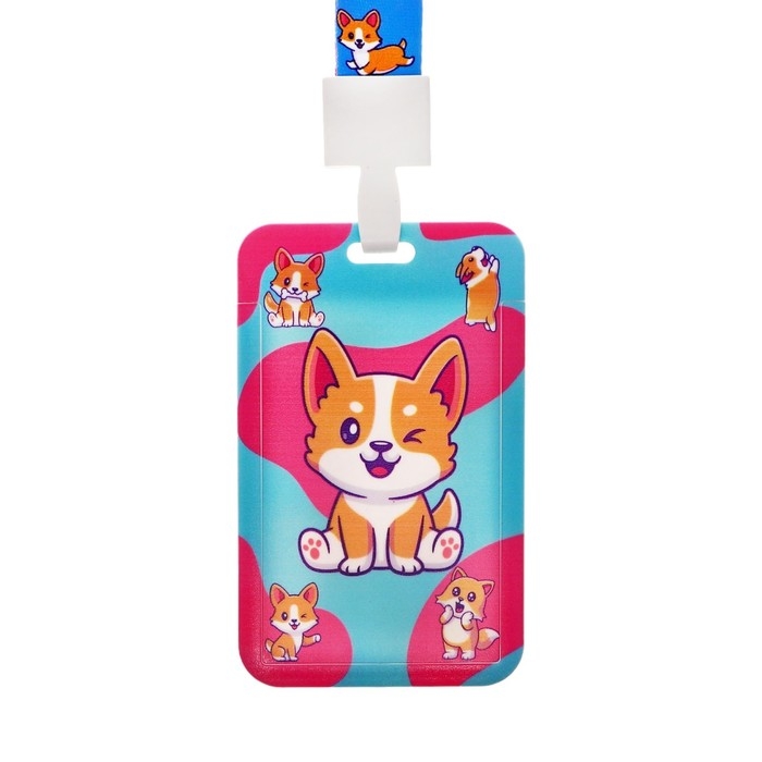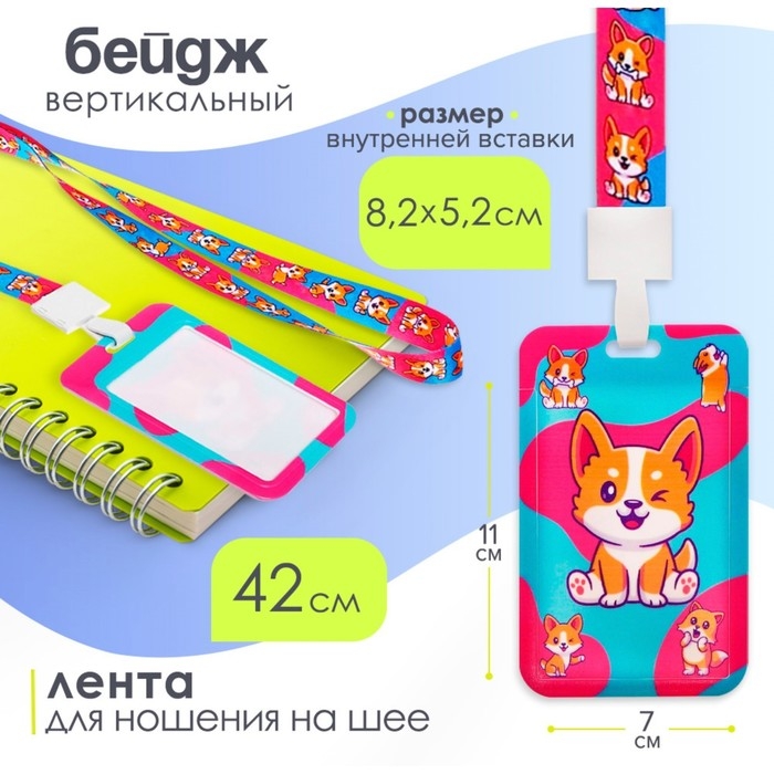 Бейдж вертикальный "Корги", внешний размер - 11 х 7 см., внутренний размер - 8,2 х 5,2 см, лента 42 см