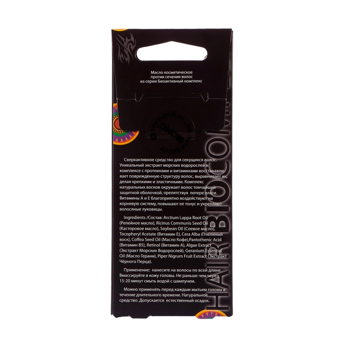 Состав: Arctium lappa root oil (репейное масло), ricinus communis seed oil (касторовое масло), soybean oil (соевое масло), retinol (витамин А), tocopheryl acetate (витамин Е), pantothenic acid (витамин В5), algae extract (экстракт морских водорослей), cera alba (пчелиный воск), coffea seed oil (масло кофе), piper nigrum fruit extract (экстракт черного перца), geranium essential oil (масло герани).