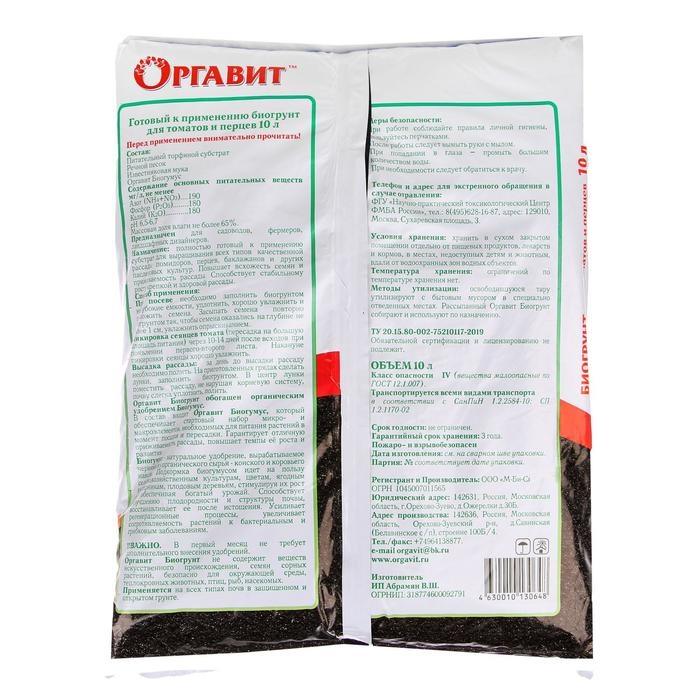 Биогрунт на основе Биогумуса "Для томатов и перцев", 10 л
