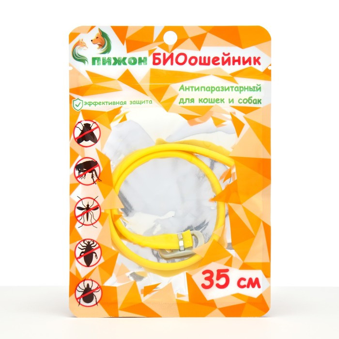 Биоошейник "ПИЖОН" для кошек и маленьких собак, от блох и клещей, жёлтый, 35 см