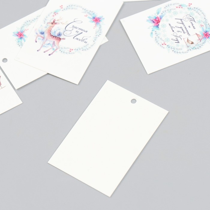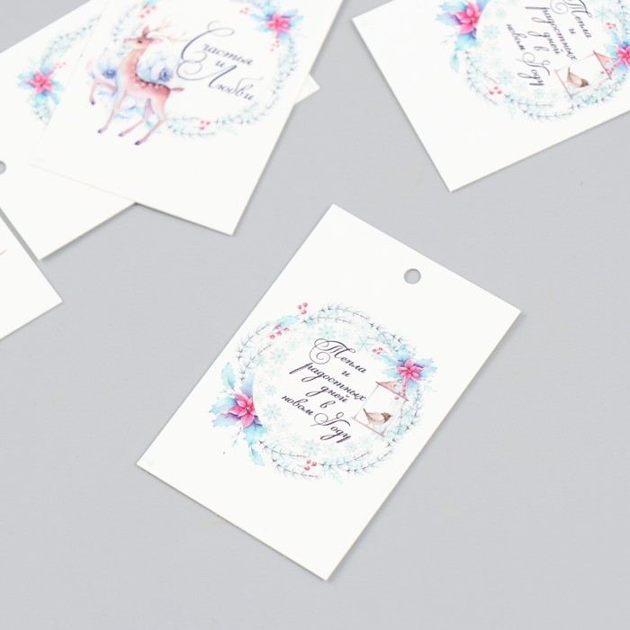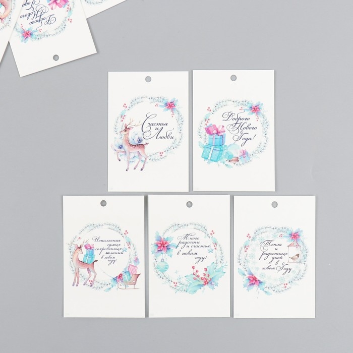 Бирка картон "Новогодние веточки" набор 10 шт (5 видов) 4х6 см
