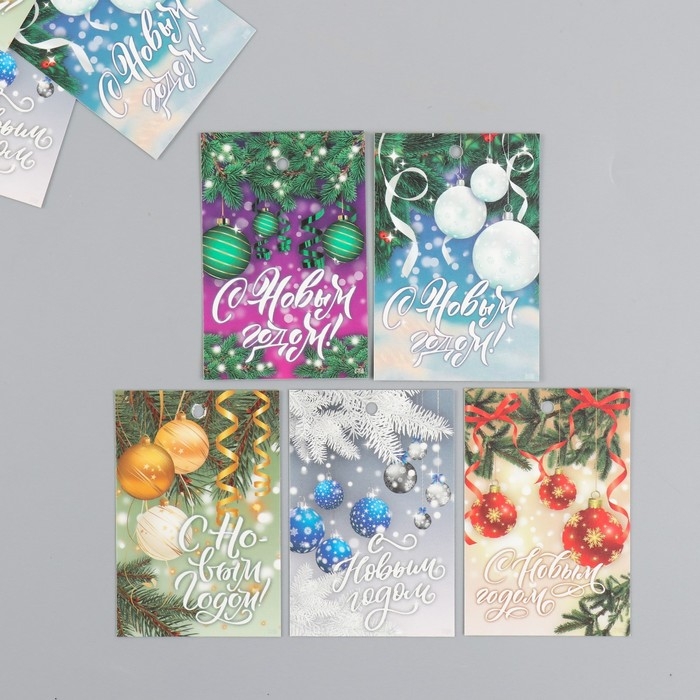 Бирка картон "С новым годом" набор 10 шт (5 видов) 4х6 см