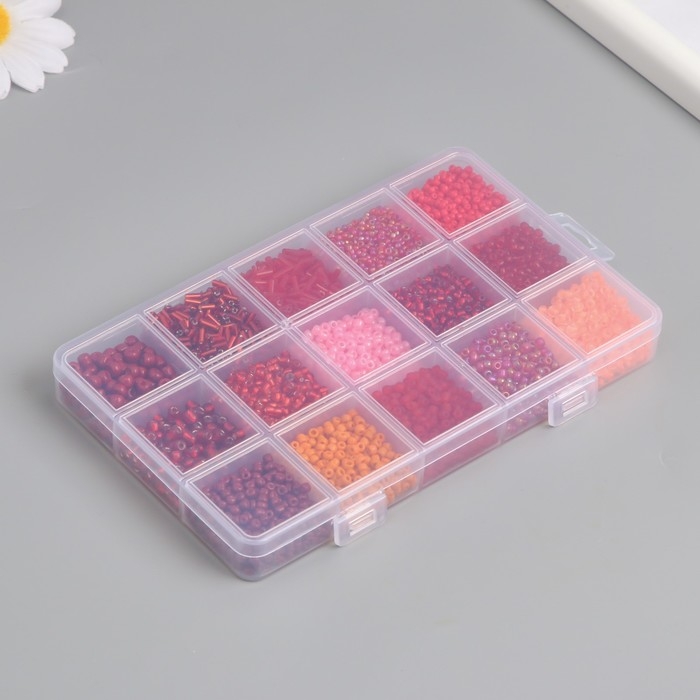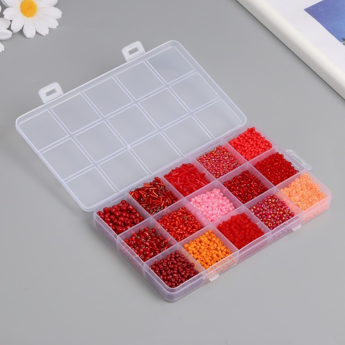 Бисер стекло 6/0, 8/0, 12/0 в шкатулке "Красный" стеклярус 15,5х9,5х1,6 см